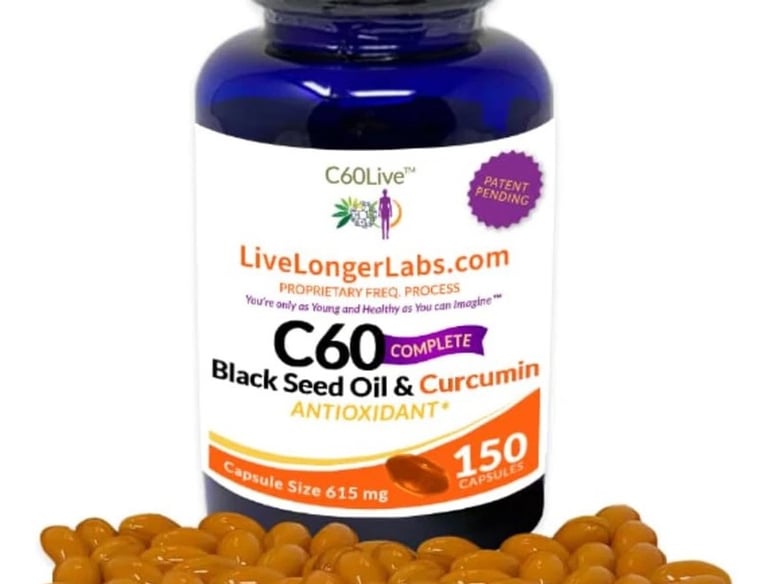 C-60 Complete - Carbon 60 (Fullerene) with Black Seed Oil & Curcumin - Antioxidant Supplement